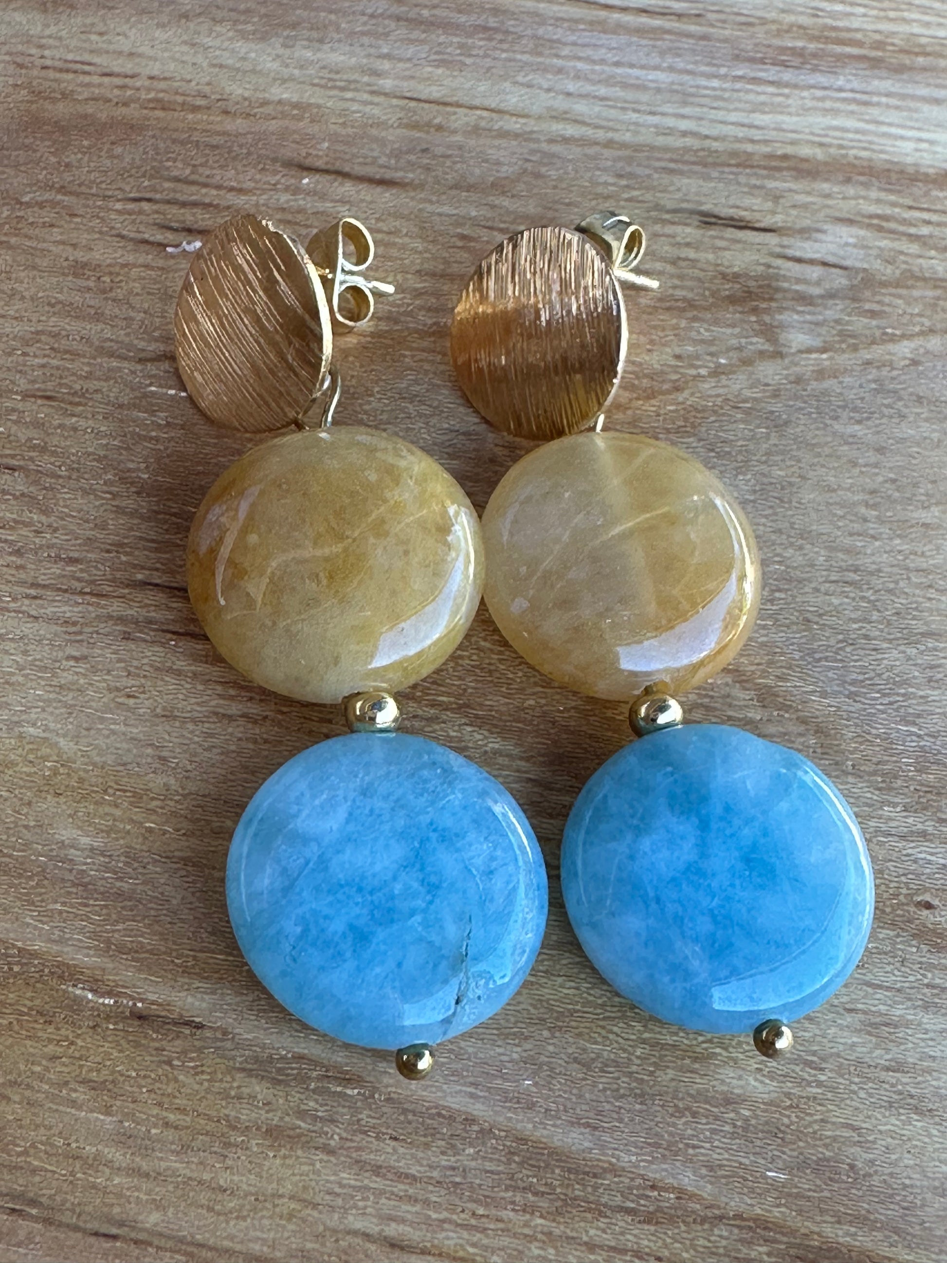Amazonite and Agate Earrings with a gold plated stud, 5 cm in length