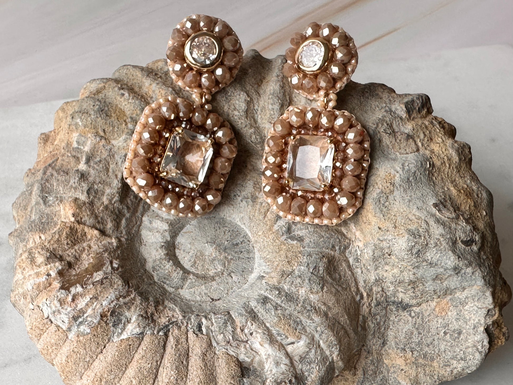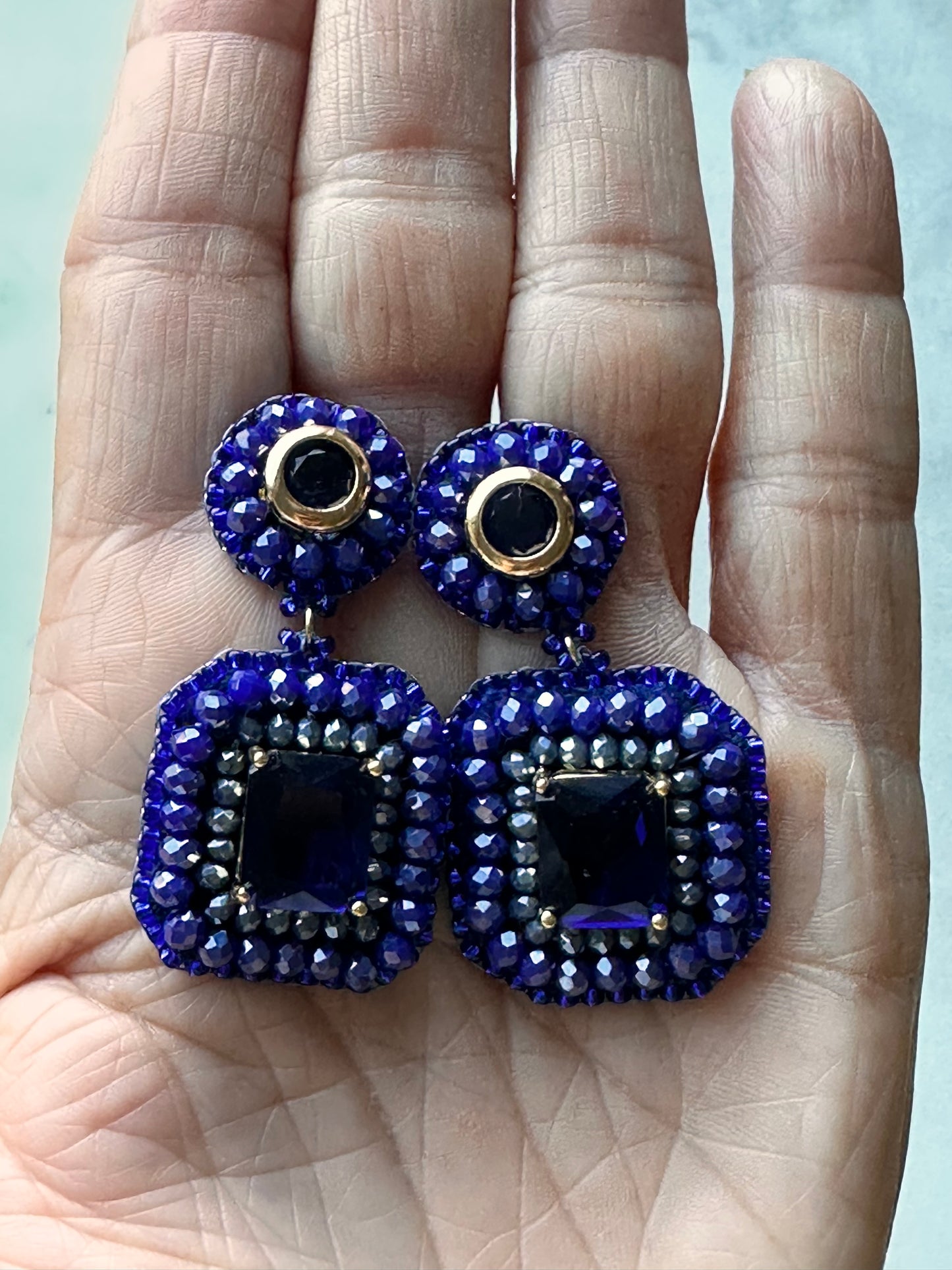 Rectangular crystal earrings. 4,5 cm in length.