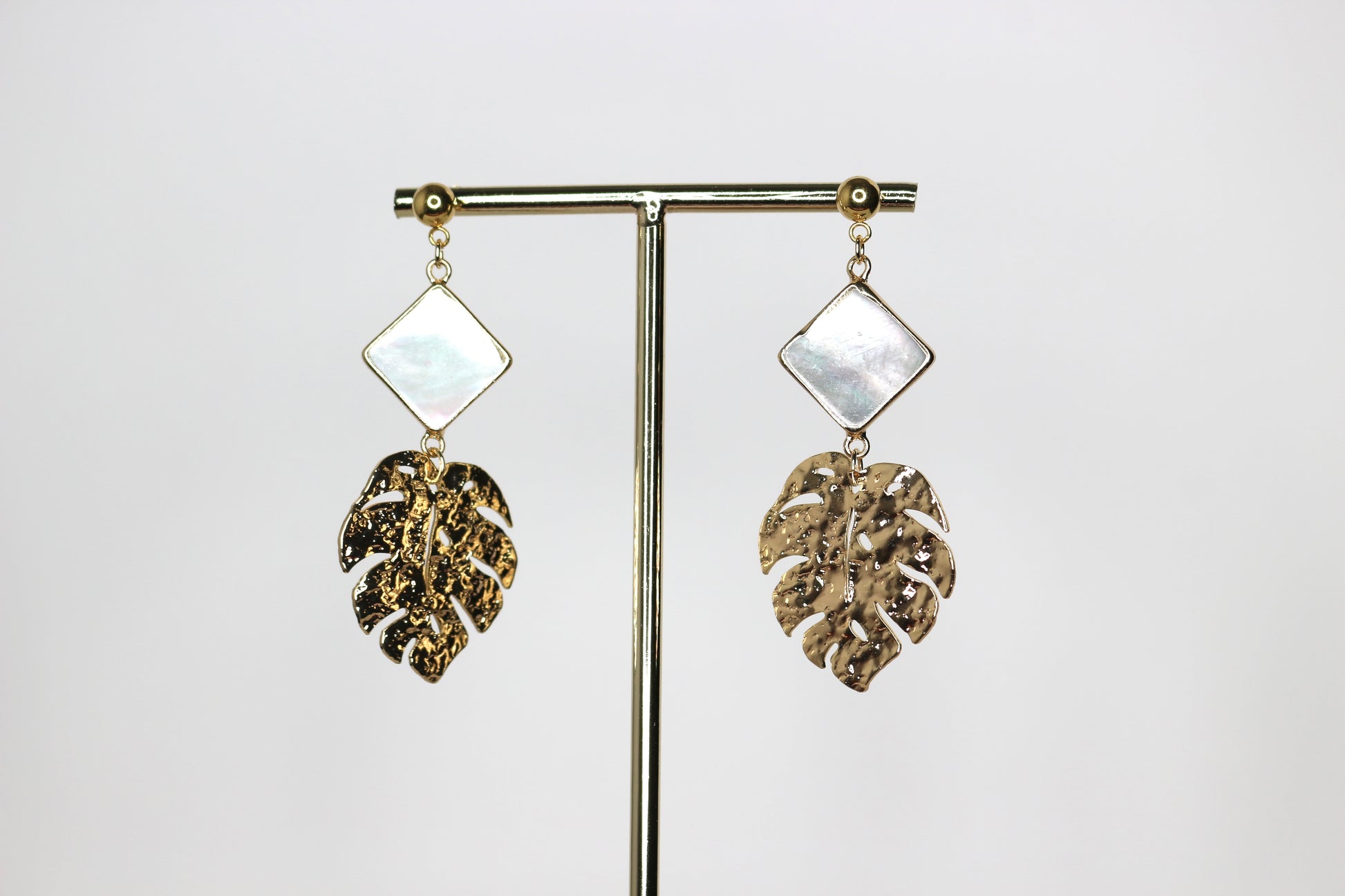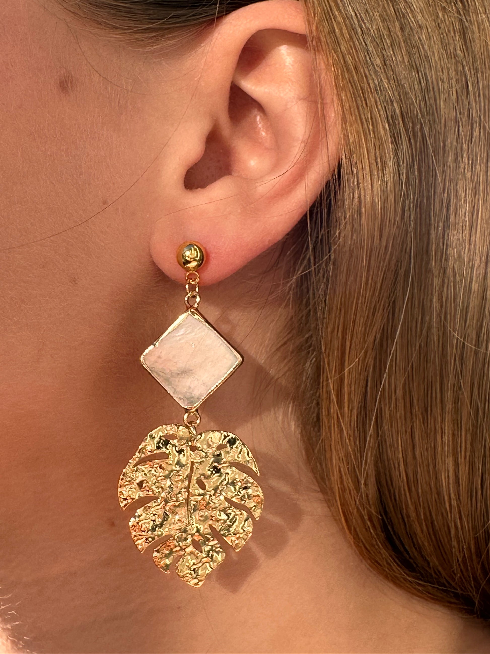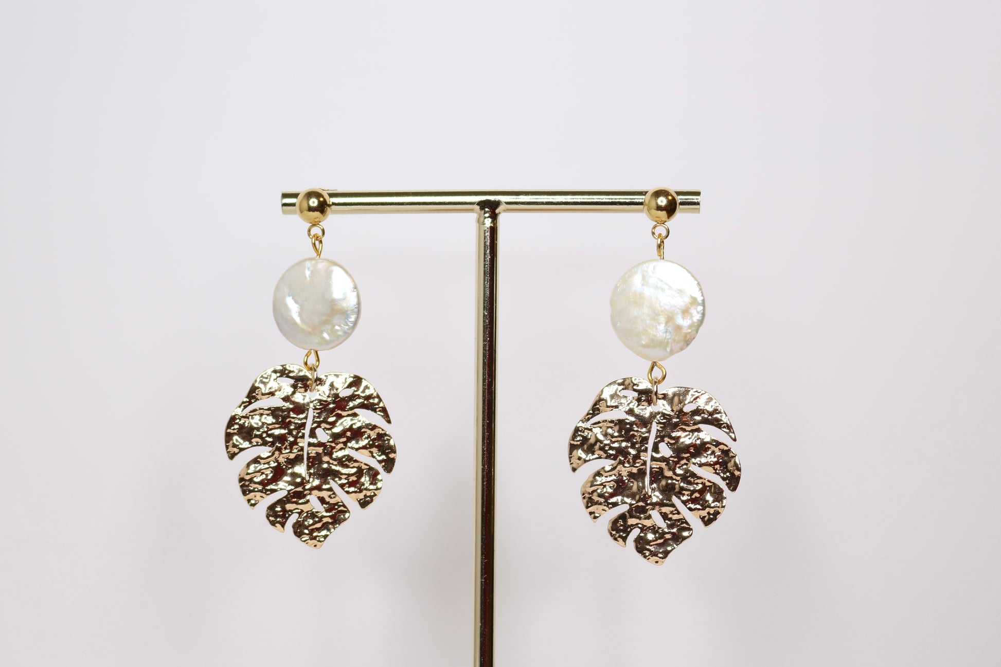 6 cm in length, Pearl, 18k gold plated monstera leaf, 24k gold plated stud