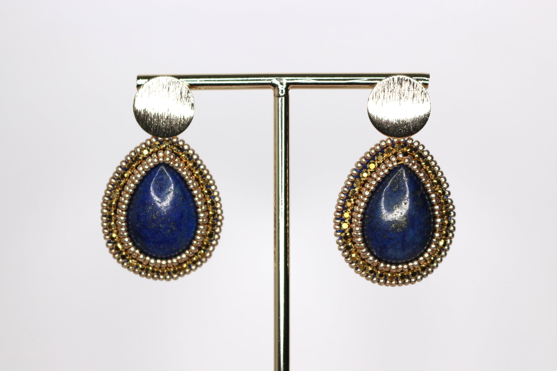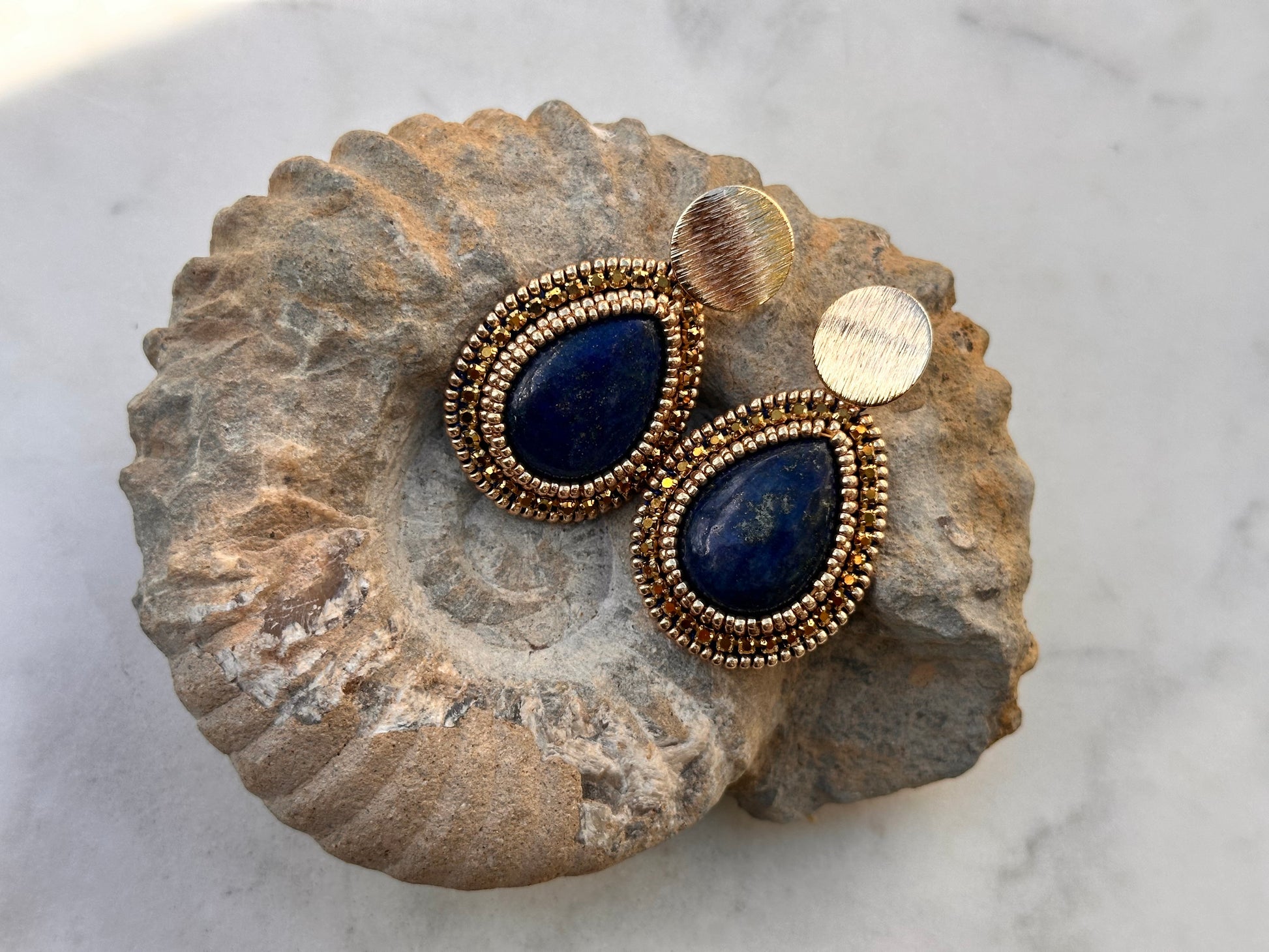 Lapis Lazuli teardrop earrings with gold details, 5 cm in length