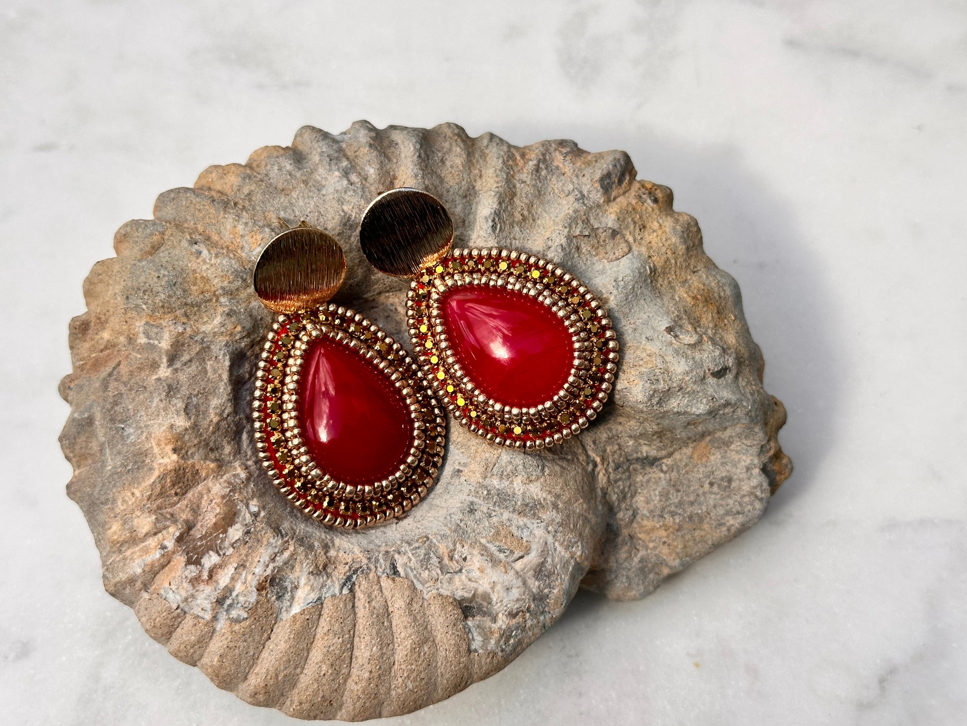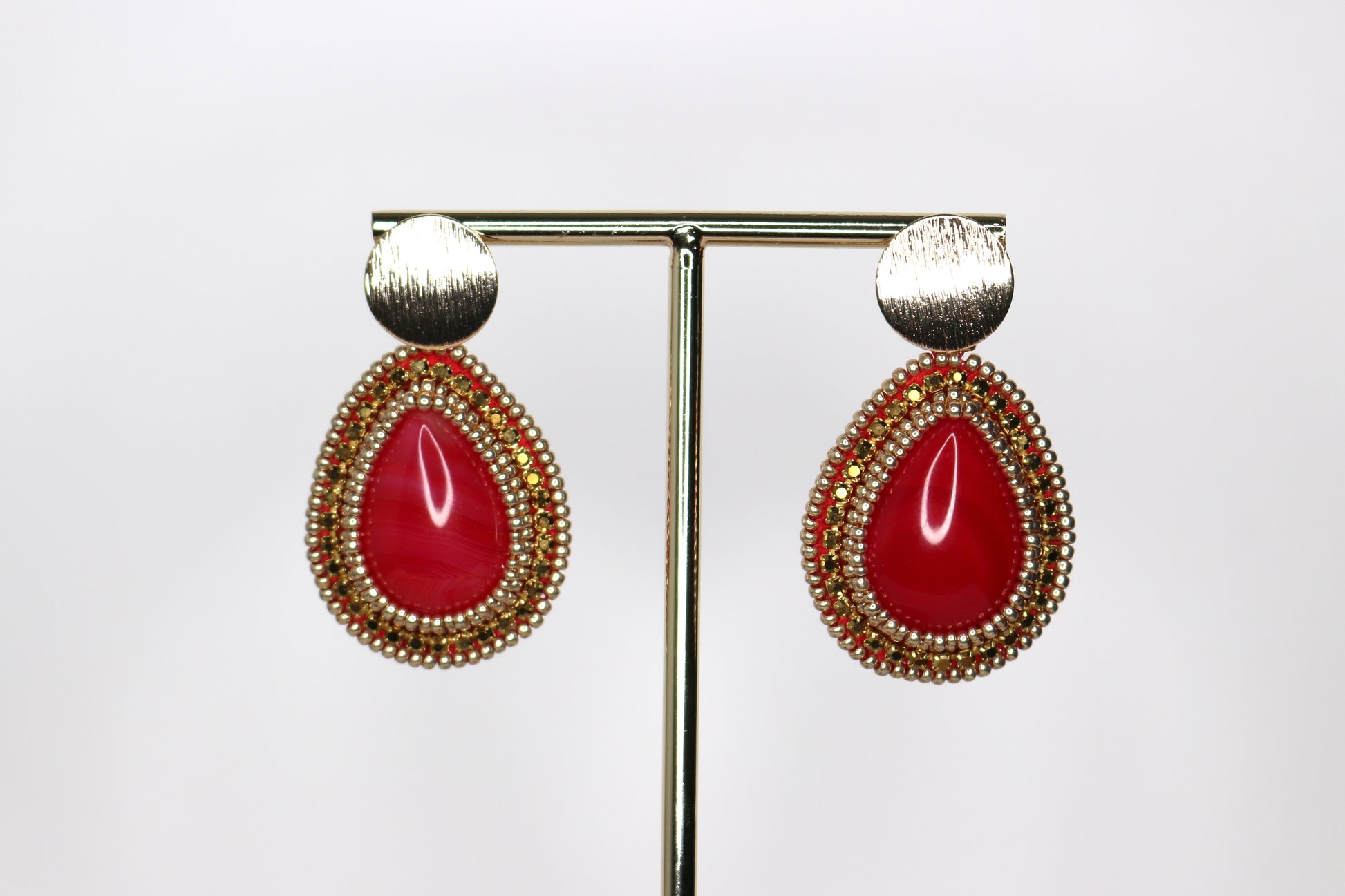 5cm teardrop, red agate with gold detailing