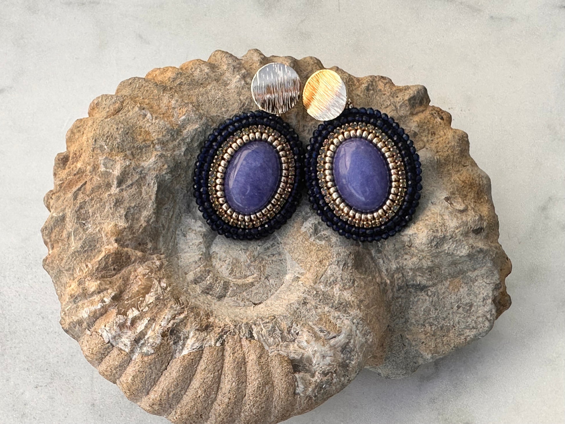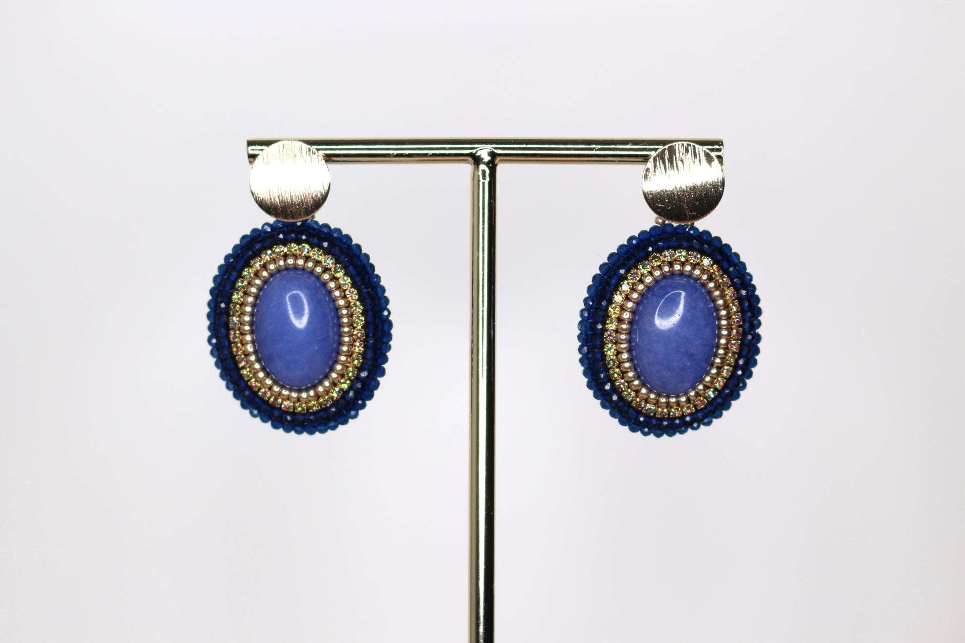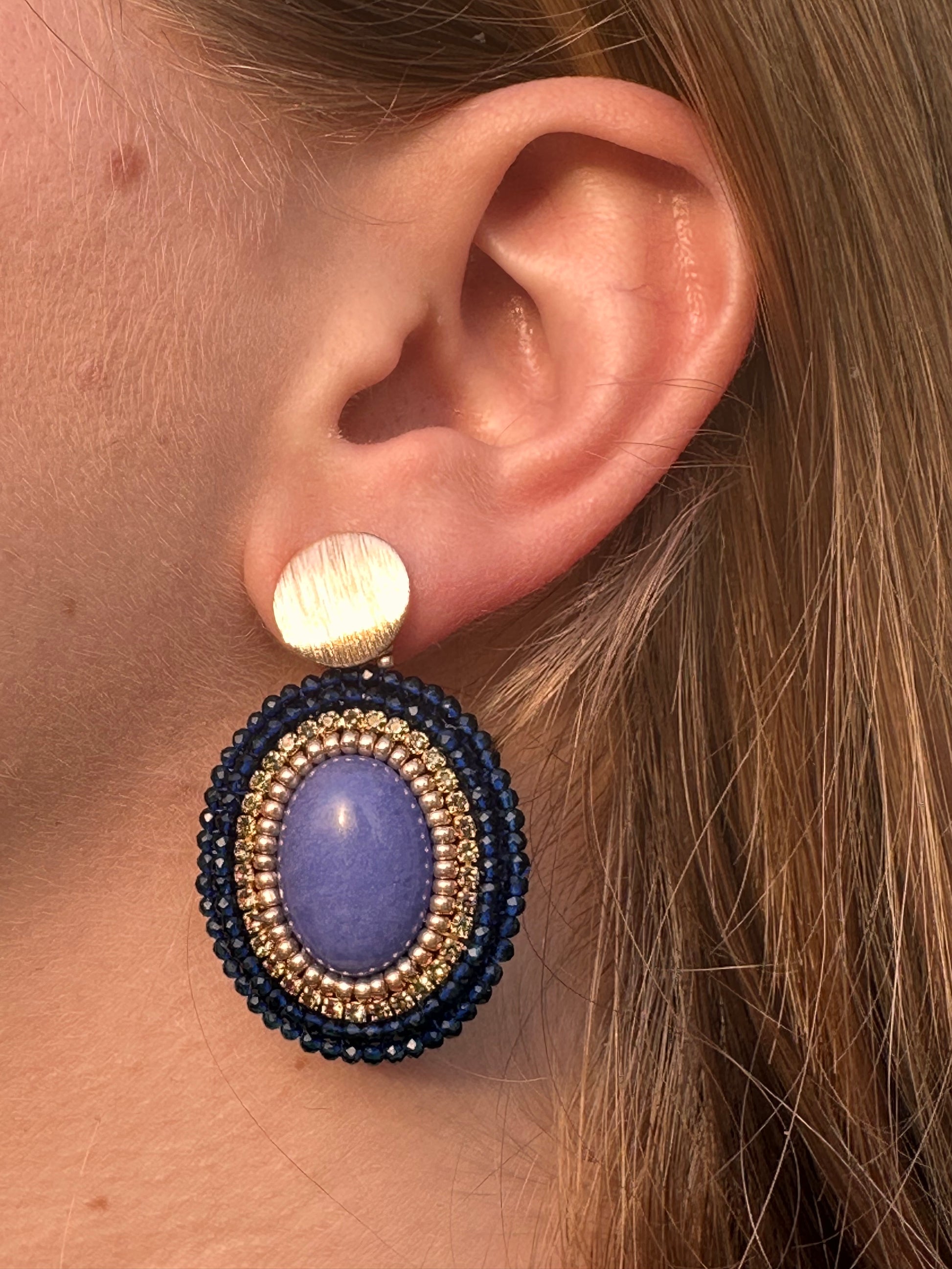 Oval jade earrings with gold details, 5 cm in length
