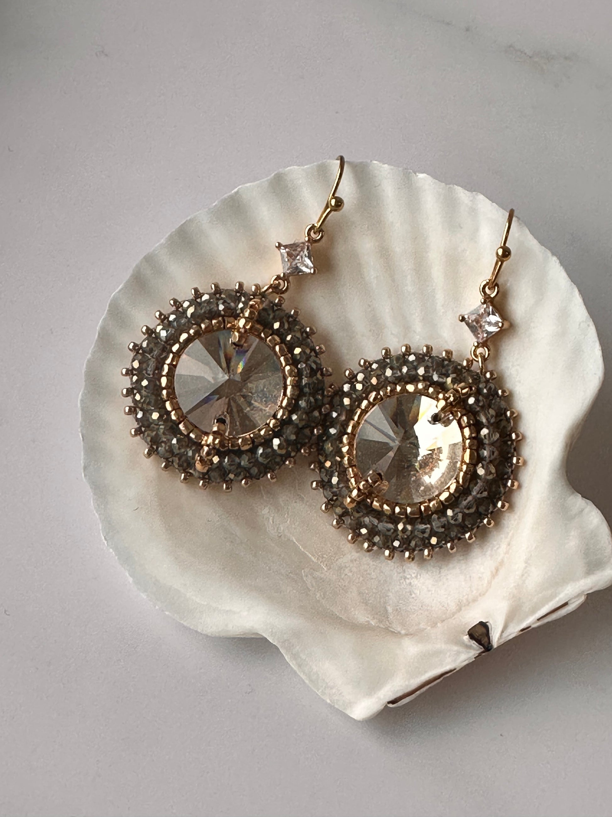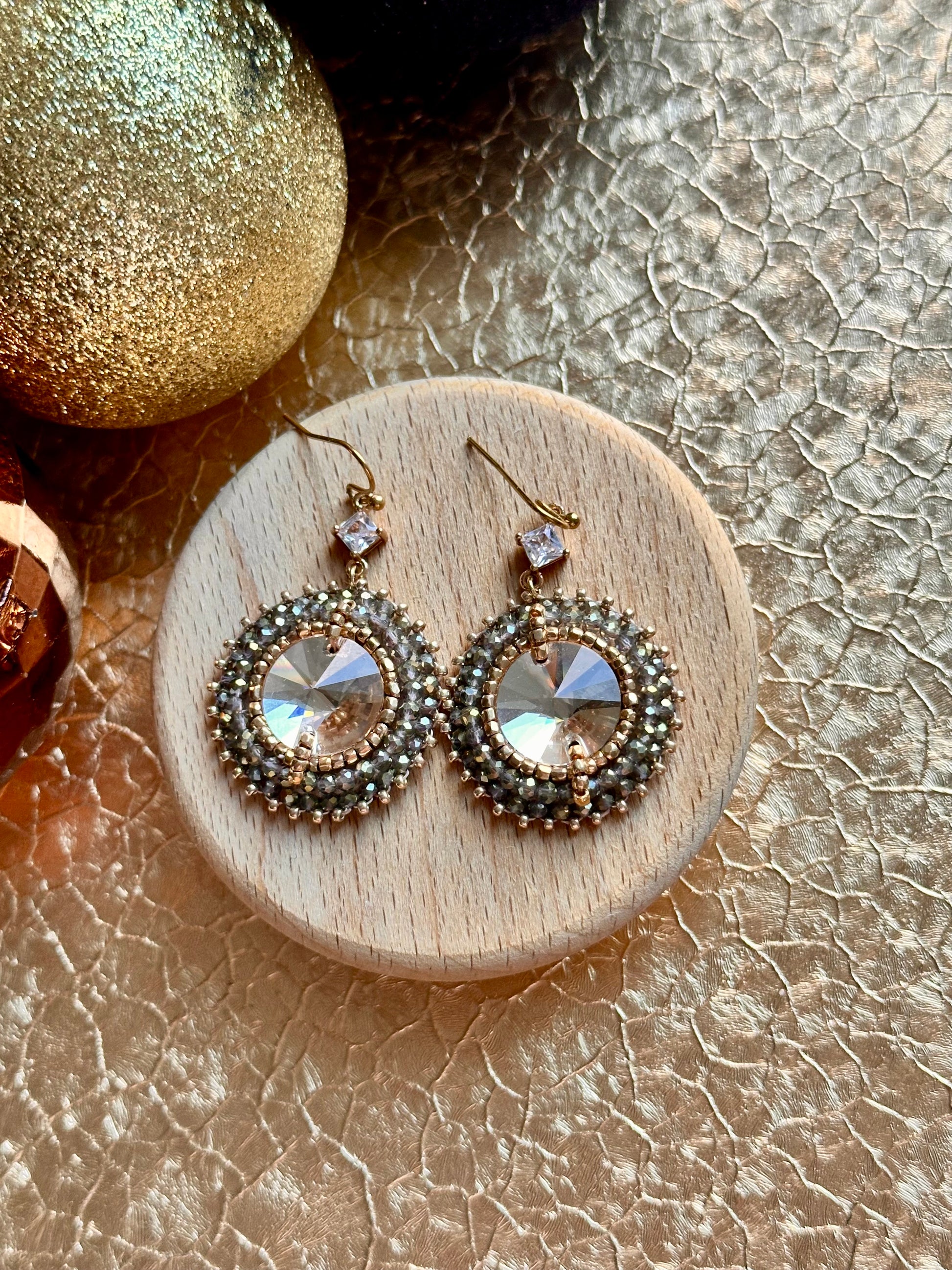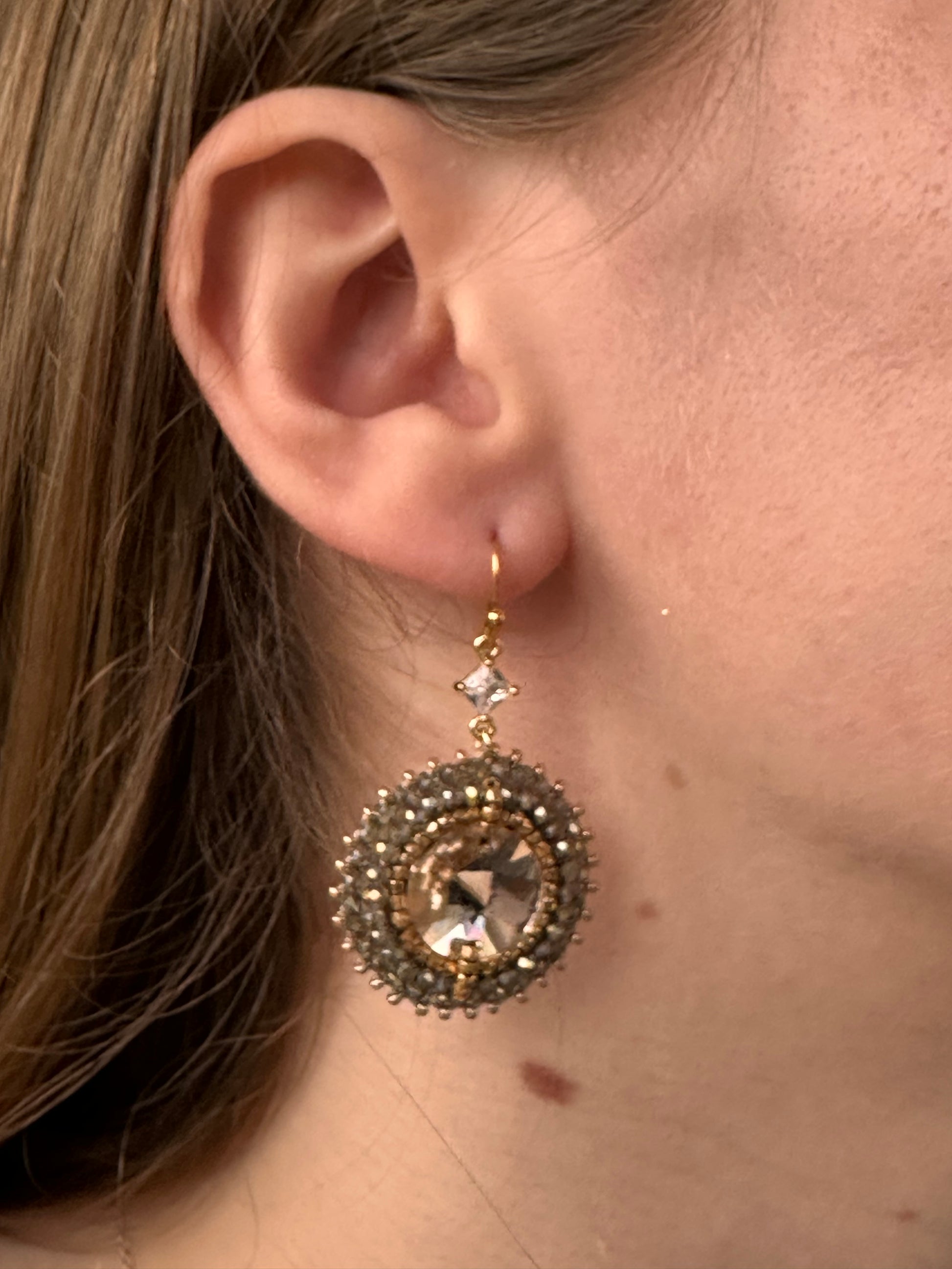 A crystal cabochon surrounded by 2mm crystals. 4,5 cm