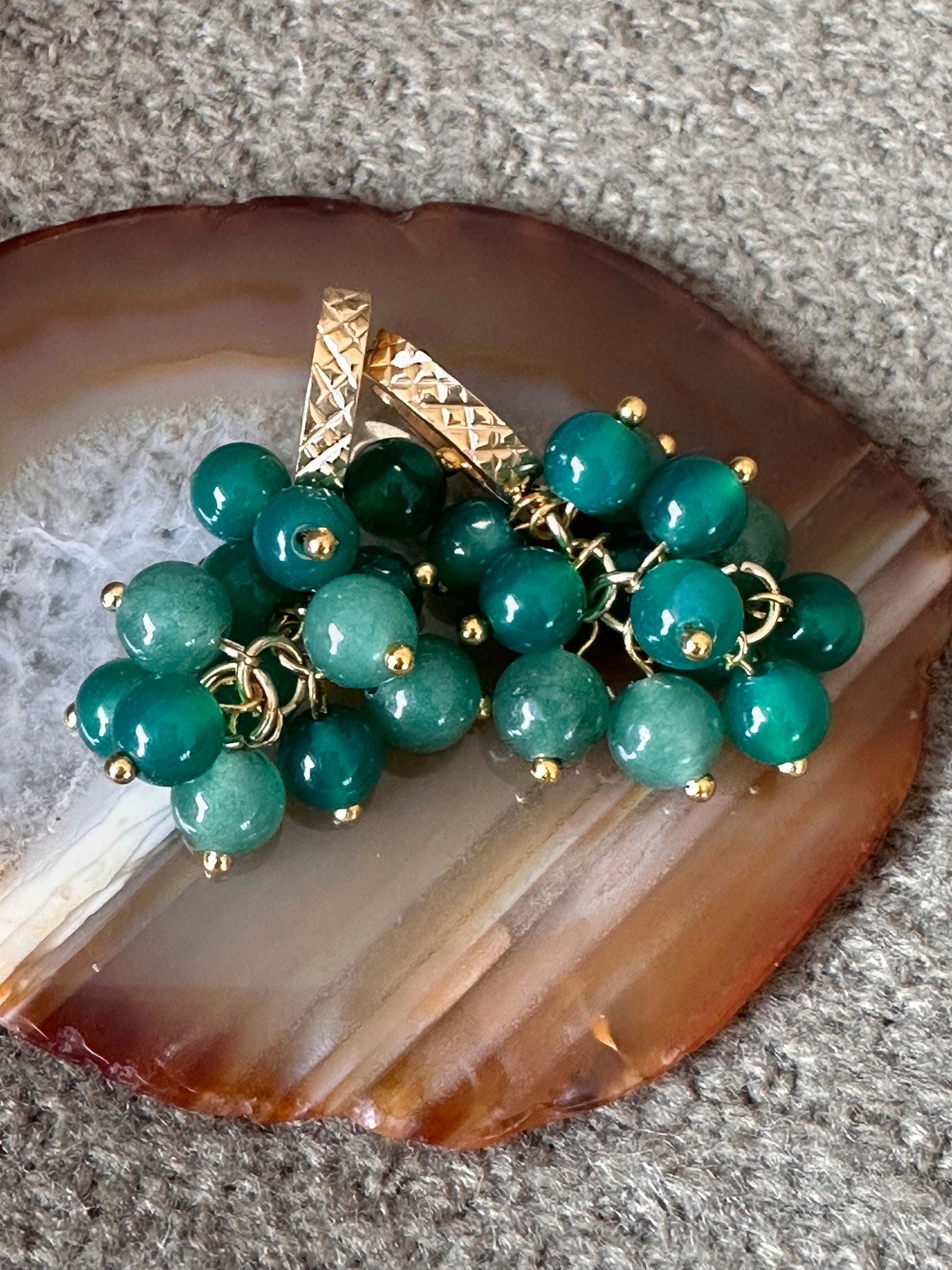 6 mm gemstone beads in a cluster, stainless steel gold plated huggies, 4 cm in length