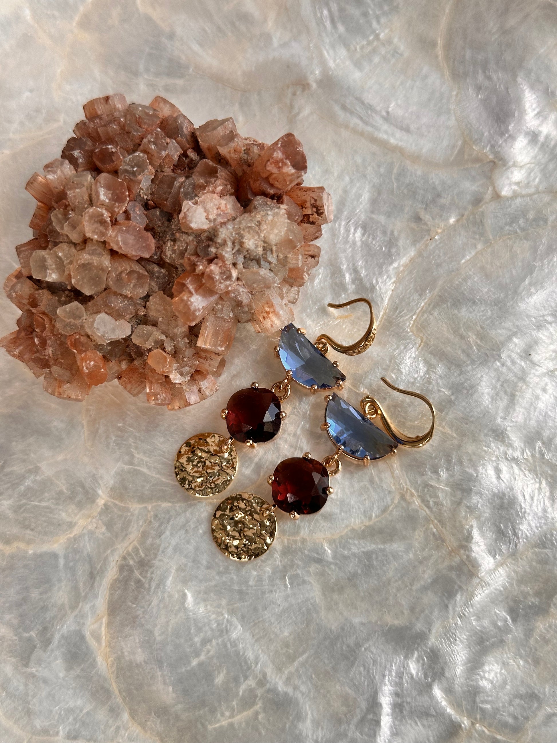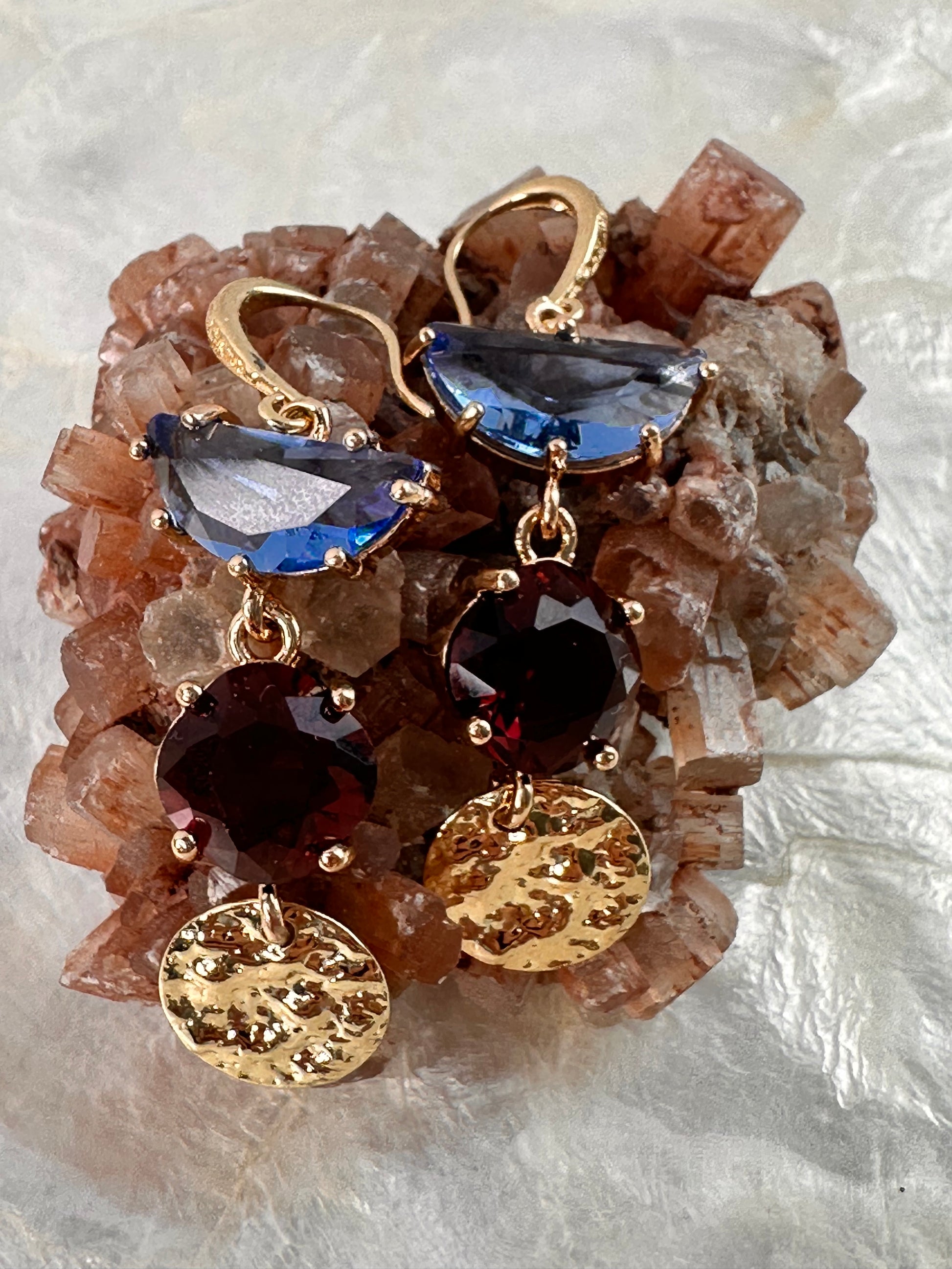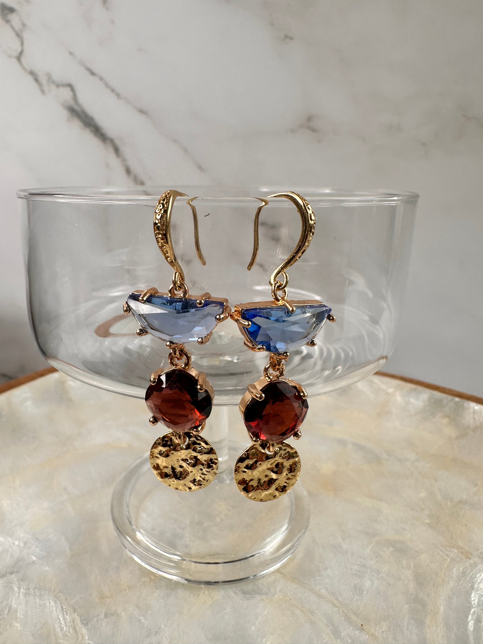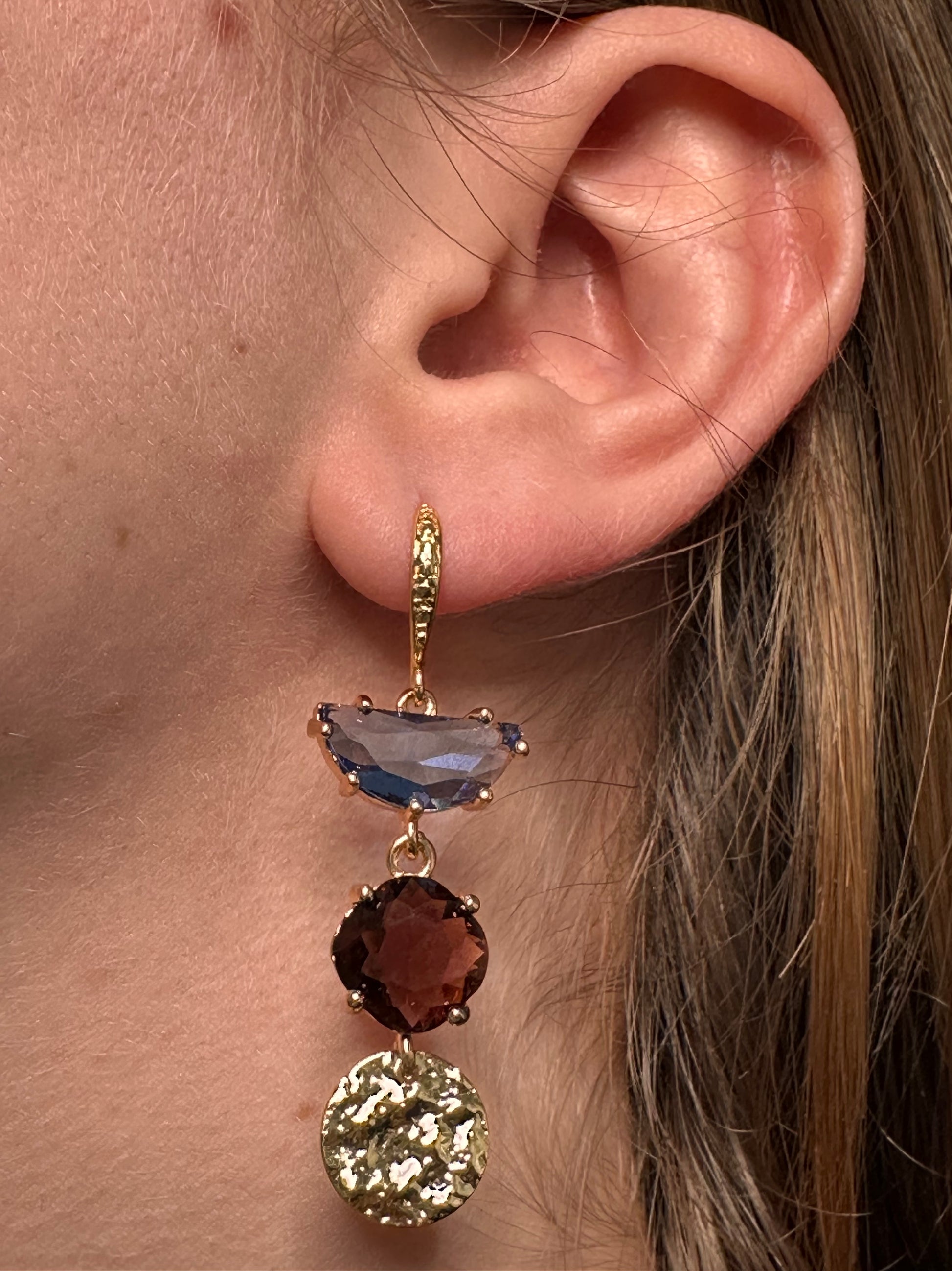 Three tiered faceted glass and gold plated earrings . 18 kt gold plated hooks. 5cm in length.