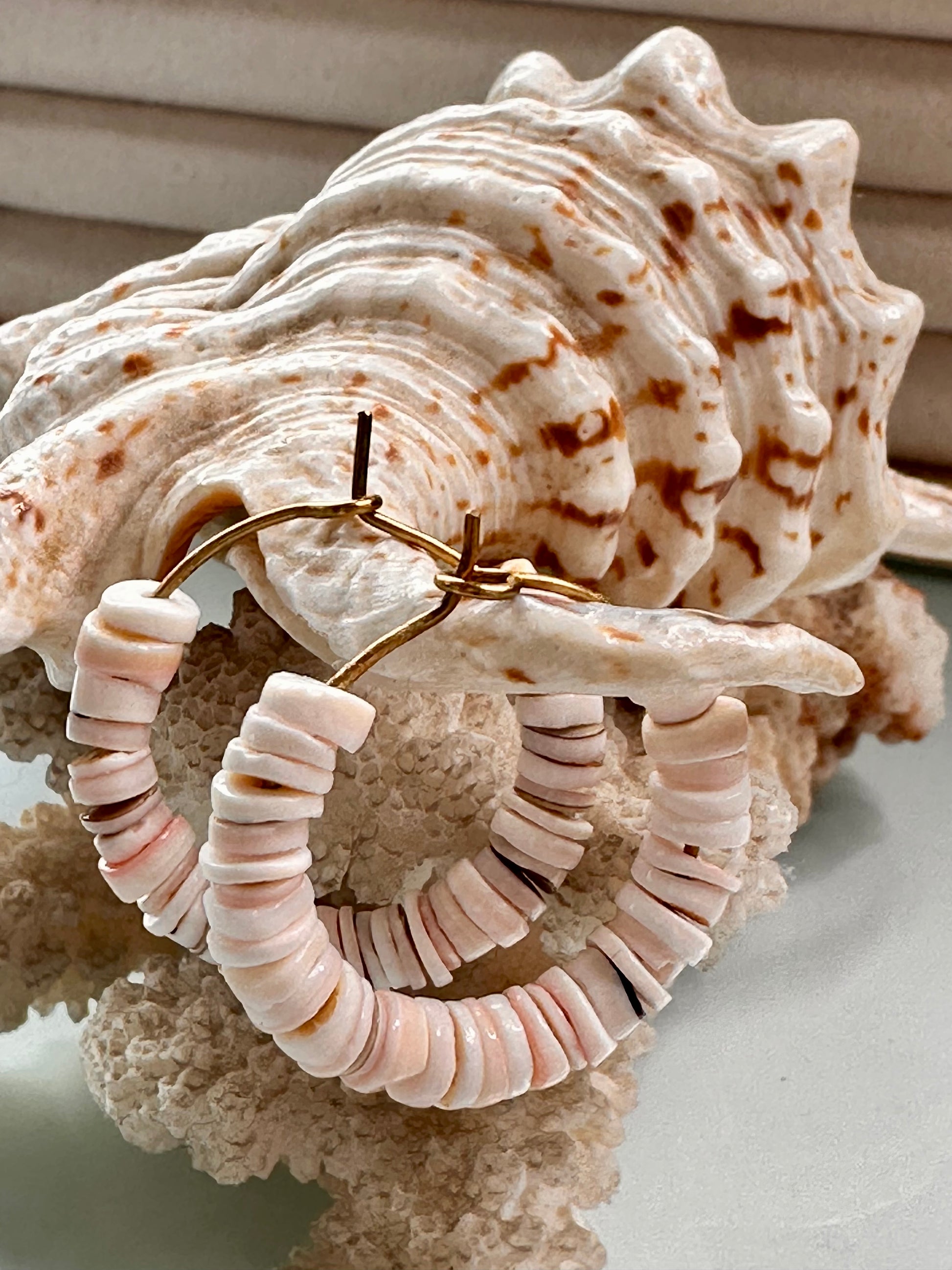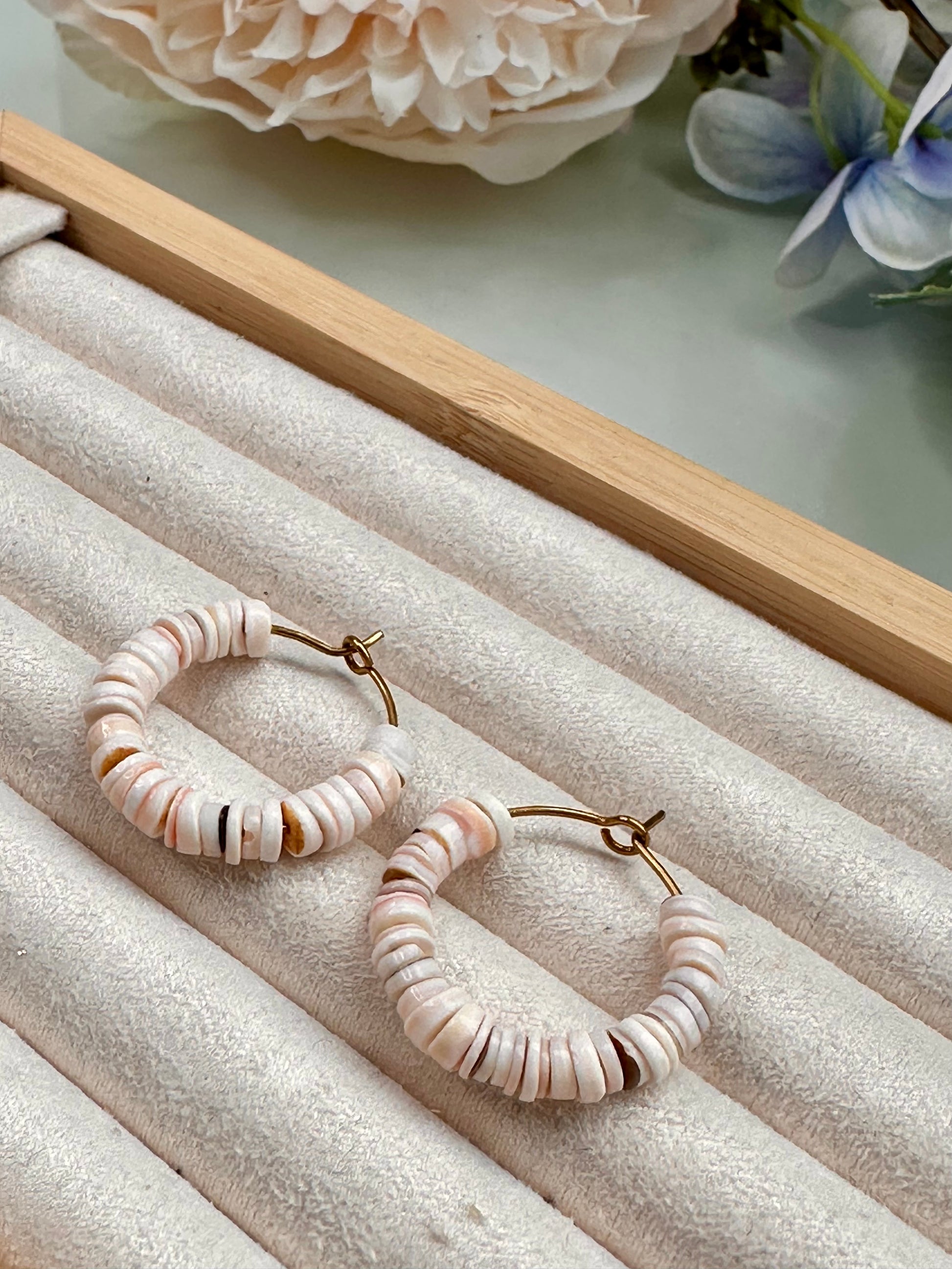 Sea shell beaded hoops , 3cm in length